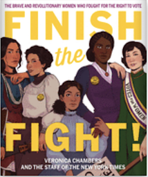 Finish the Fight: The Brave and Revolutionary Women Who Fought for the Right to Vote by Veronica Chambers and the Staff at the New York Times is a 100-page book that is told in narrative. The book begins with the words..."Here are some suffragists you may have learned about..." (above images of Susan B. Anthony, Elizabeth Cady Stanton and other white women). "...but there are lots more you should know!" above images of a much larger number of women who were part of this fight. This book is filled with information, artifacts and photos and is written for middle grade/middle school readers.